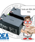 Batteries set with 2 x 12V batteries (1,2Ah for 24V operators) and connecting cables - suits all DEA 24v Systems